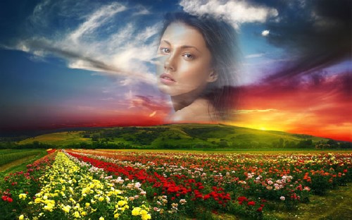 Рамка для фотомонтажа - Поле из цветов PSD | 2000x1250 | 300 dpi | 29 мб Автор: Alexey84
