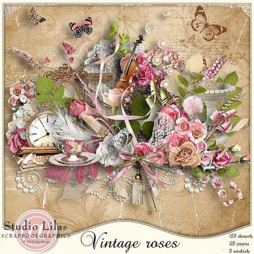 Романтический скрап-набор - Винтажные розы 133 png | 25 jpg | 3600x3600px | 473 Mb