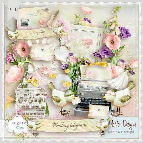 Романтический скрап-набор - Свадебная телеграмма 45 png | 9 jpg | 4 Clusters | 153,26 Mb
