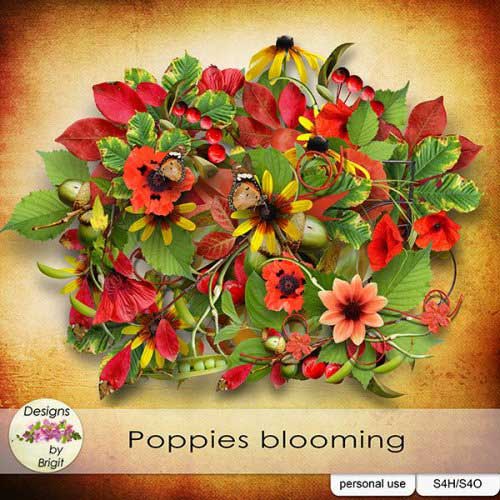 Летний скрап-комплект - Цветение маков 57 png | 16 jpg | 5 clusters | 3600x3600px | 327,22 Mb
