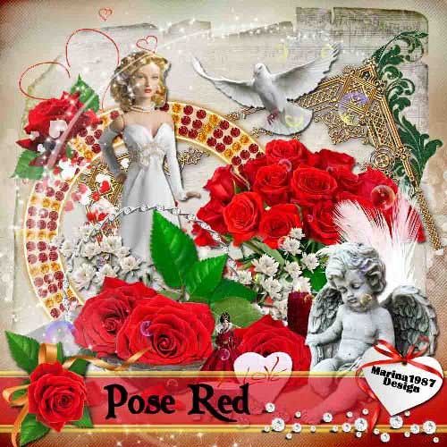 Романтический скрап-набор - Красная роза 50 png | 10 jpg | 5 masks | 12 Clusters | 5 QP | 248,46 Mb