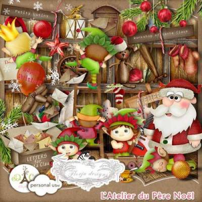 Новогодний скрап-комплект - L'atelier du Pere Noel 119 png | 23 jpg | 3600x3600px | 230,99 Mb