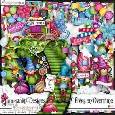 Детский новогодний скрап-комплект - Elves On Overtime 147 png | 46 jpg | 3600x3600px | 330,33 Mb