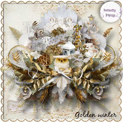 Зимний скрап-комплект - Золотая зима 111 png | 16 jpg | 4 QP | 3600x3600px | 282,82 Mb