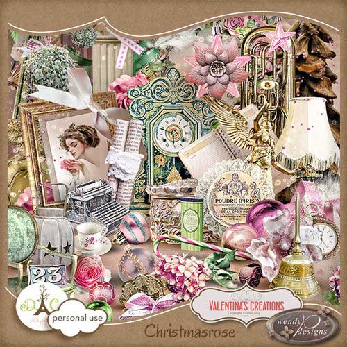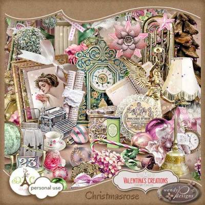 Очаровательный новогодний скрап-комплект - Рождественская роза 164 png | 33 jpg | 3600x3600px | 613,93 Mb